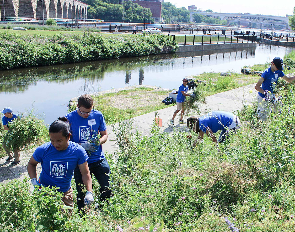 More than 80 employees from four Pentair facilities in the Twin Cities area helped clean a historic section of riverfront along the Mississippi River. Team Pentair worked with Minnesota Twin Brian Dozier and the Minneapolis Parks Foundation, a Pentair Foundation grantee, at the site, which is being developed as an innovative public space that will help protect the river, provide recreation opportunities and highlight historic features.